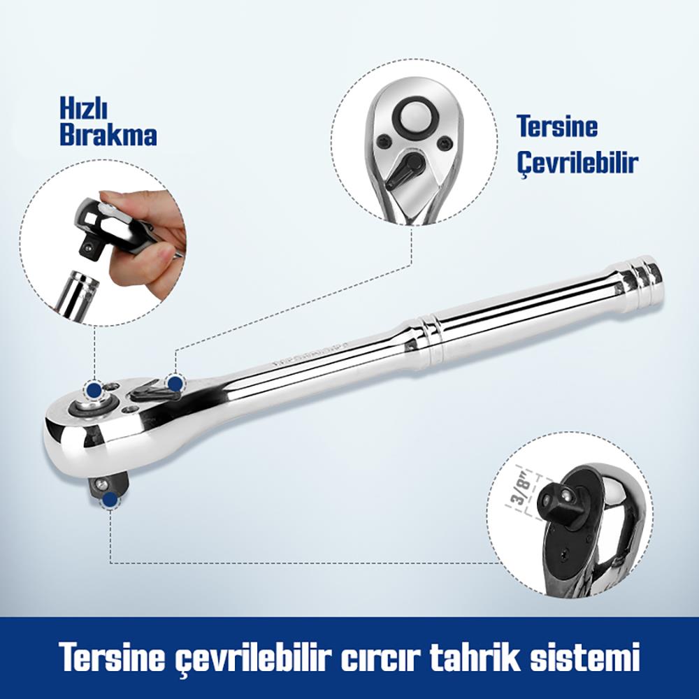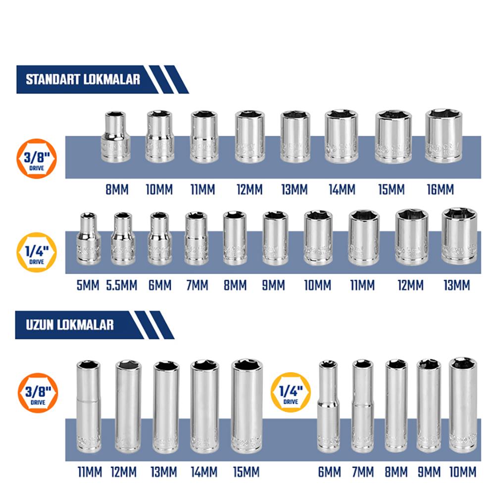 WORKPRO WP202524 1/4'’ 3/8’’ Metrik 75 Parça Cr-V Profesyonel Lokma Takımı