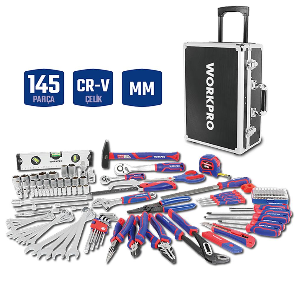 WORKPRO WP209089 145 Parça CR-V Profesyonel El Aleti Tamir Seti Tamir Bakım Çantası