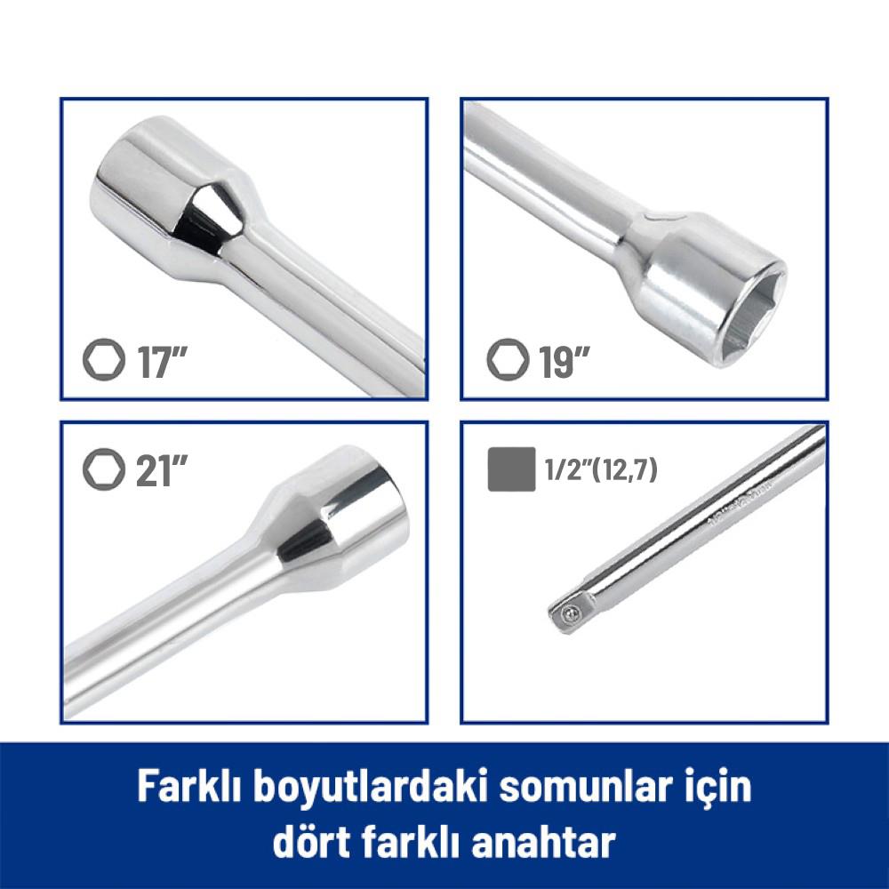 WORKPRO WP314006 17 19 21 1/2’’ Cr-V 400mm 4 Kollu Profesyonel Bijon Anahtarı