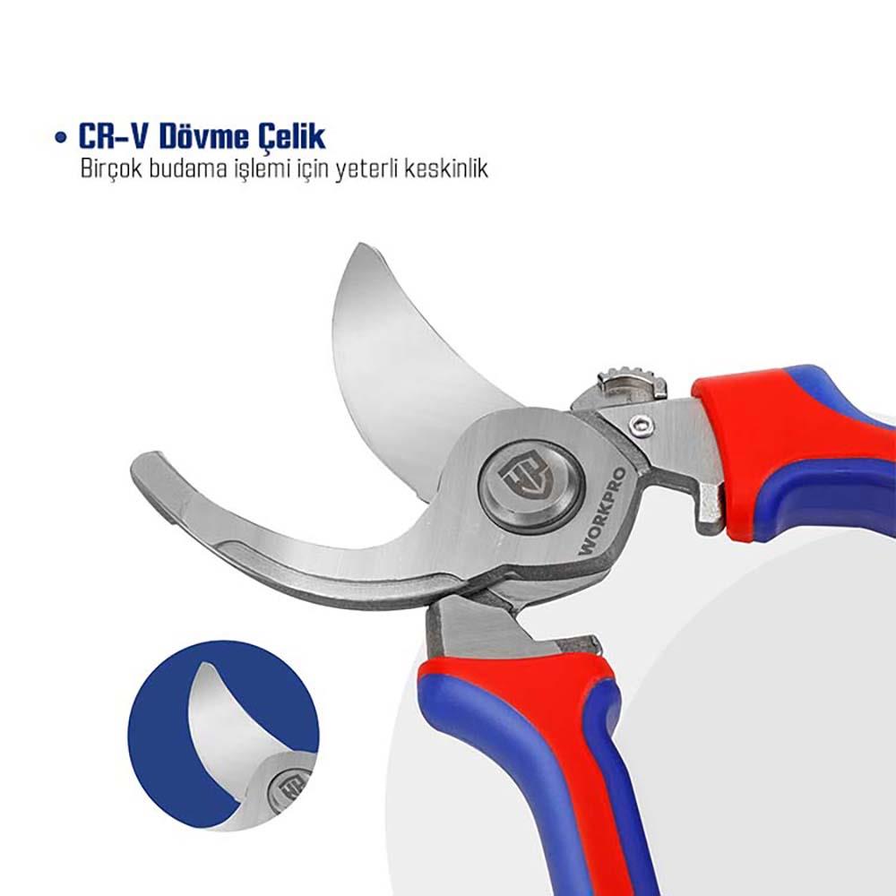 WORKPRO WP332013 220mm Bypass Cr-V Profesyonel Bağ Bahçe Dal Budama Makası