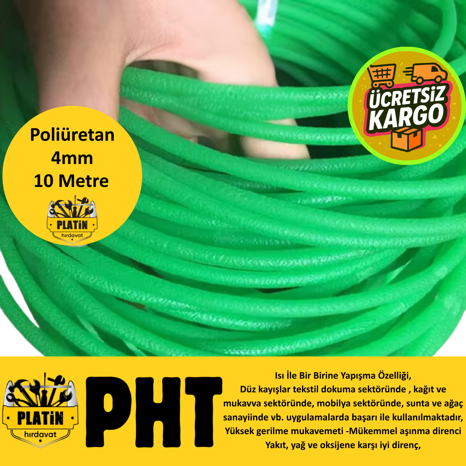 PHT Yuvarlak Poliüretan Açik Uçlu Kayis 4mm Yeşil ( 10 Metre ) plt574
